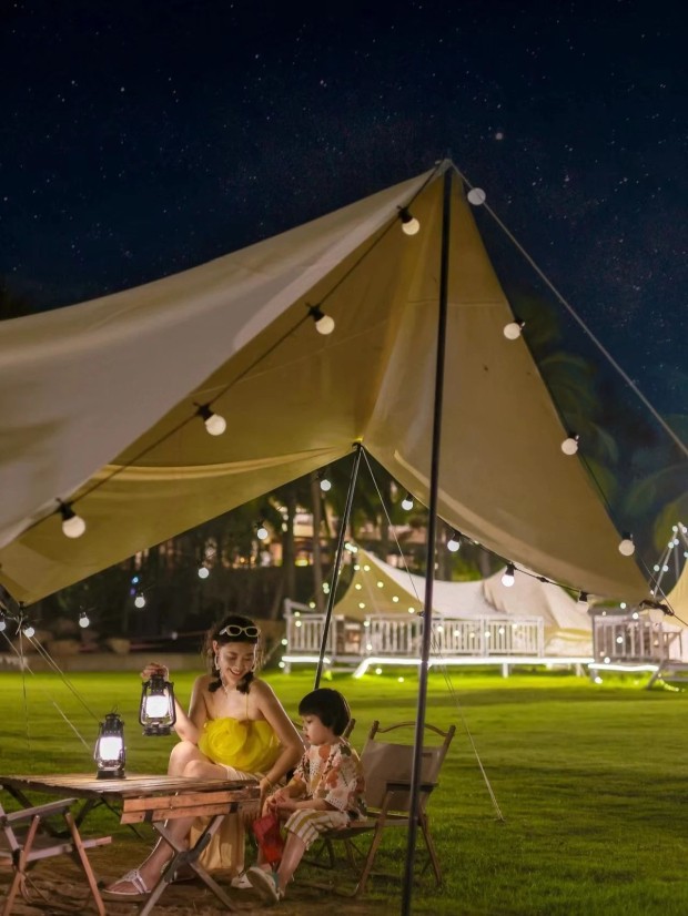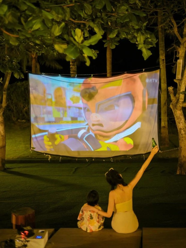 到了晚上,可以来海边的【行宿物语露营地】参与篝火派对,或是看一场露天电影,给一天画上完美句号!