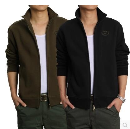 > 2015春秋男装抓绒卫衣男士外套立领开衫纯棉运动休闲外衣大码上衣